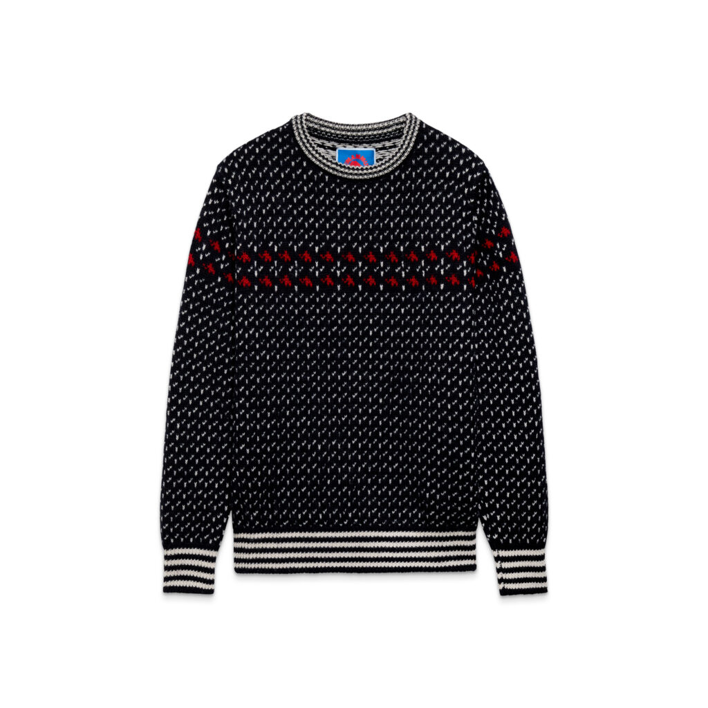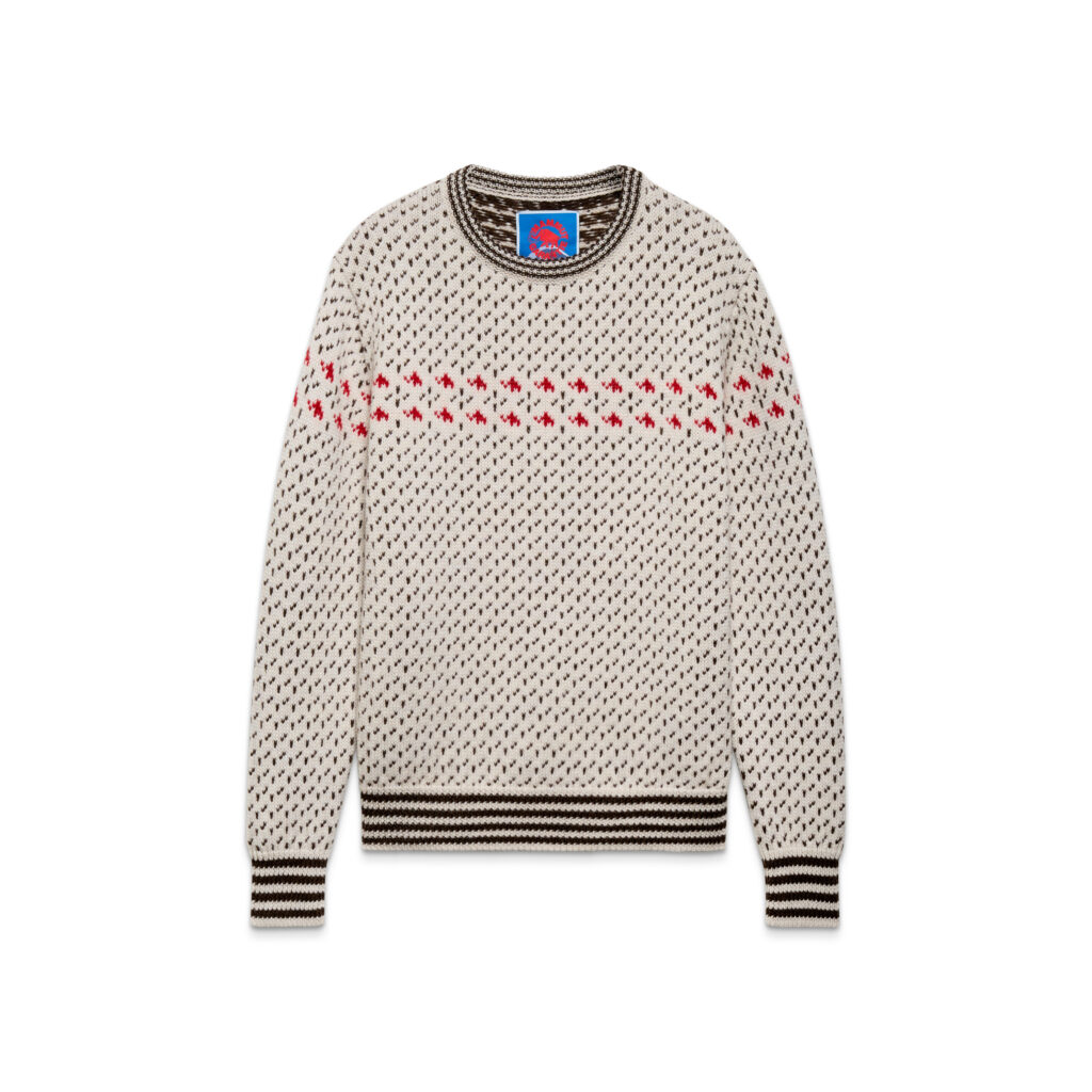 1969 年に達成された、日本直登ルートでのアイガー初登頂にインスパイアされ、登山のパイオニアたちが着用したセーターを元にデザインされた。60 年代の登山家が防寒アウター素材として愛用した保温性の高いウールを使い、スコットランドにある世界有数の工場に編み上げを依頼。フルファッション編み構造、ジャガード織のマンモス柄、ストライプの袖と裾が当時の雰囲気を伝える、登山スタイルとして時代を越えて愛されるデザインを取り入れたセーター。