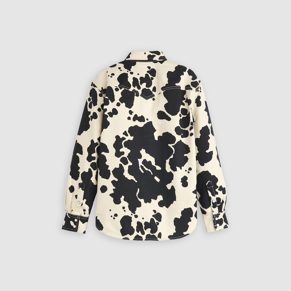 ウィメンズのコレクションでは、力をくれるようなシルエットと本格的なウェスタンのディテールを通じて Jessie の溌剌とした独立心を表現している。注目の Levi’s® x Toy Story Type II Jacket はリンスデニムを使ったウェスタンのシルエット。胸もとには「Yodelayheehoo」と描かれた鎖縫いの刺しゅうが入り、エクリュカラーの襟が魅力的なコントラストを生んでいる。Western Shirt はメンズのRodeo Shirt と同じカウプリントのデニムを使用。Ribcage Bell ジーンズでは、ウェスタン風のスマイルポケット、カウプリントのウエストバンド、そして「Howdy」と描かれた刺繍を組み合わせて、人気のシルエットを生まれ変わらせている。