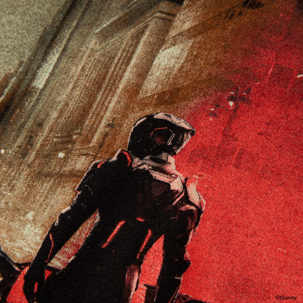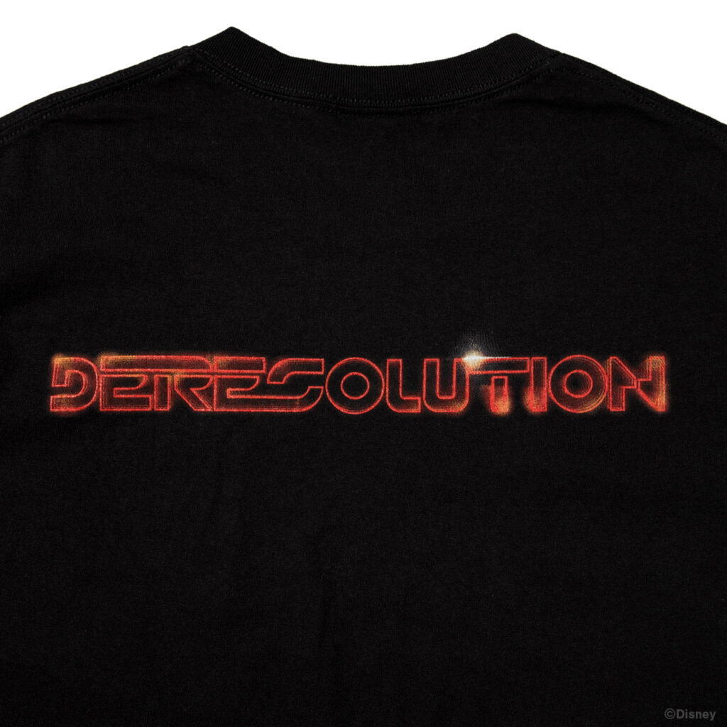 今作は『トロン : アレス』のポスタービジュアルをフロントに採用し、バックには映画のキーフレーズ「DERESOLUTION」をプリント。フロント15版、バック7版使用し、『トロン : アレス』の世界観を合計22版のシルクスクリーンで再現したスペシャルな一着。