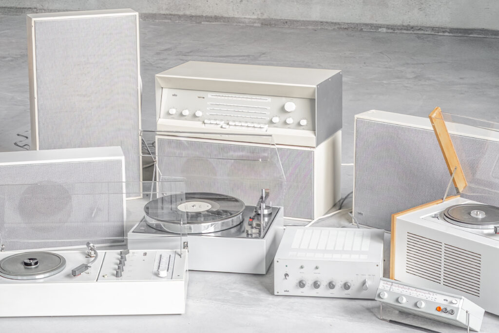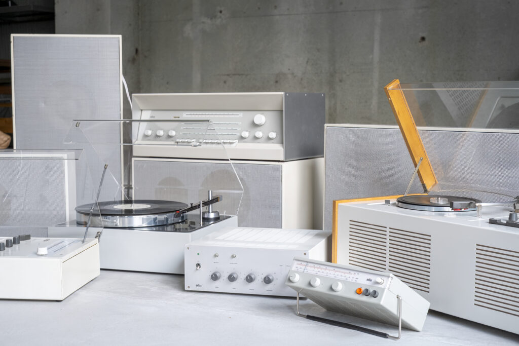 本展では、ドイツ中を巡り集めたBraun製品が一堂に並ぶ。革新的なデザインのSKシリーズやAtelierシリーズをはじめ、端正なAudioシリーズ、 Lシリーズのスピーカー、真空管ラジオRCS9やRT20、コンパクトなTシリーズ、そして存在感あるPCS51などのAudio類に加え、卓上ライターや時計 といった日用品も展示/販売される。そこに宿るのは、Dieter Ramsが追い求めた「Less but better」の思想に基づく優れたデザインだ。