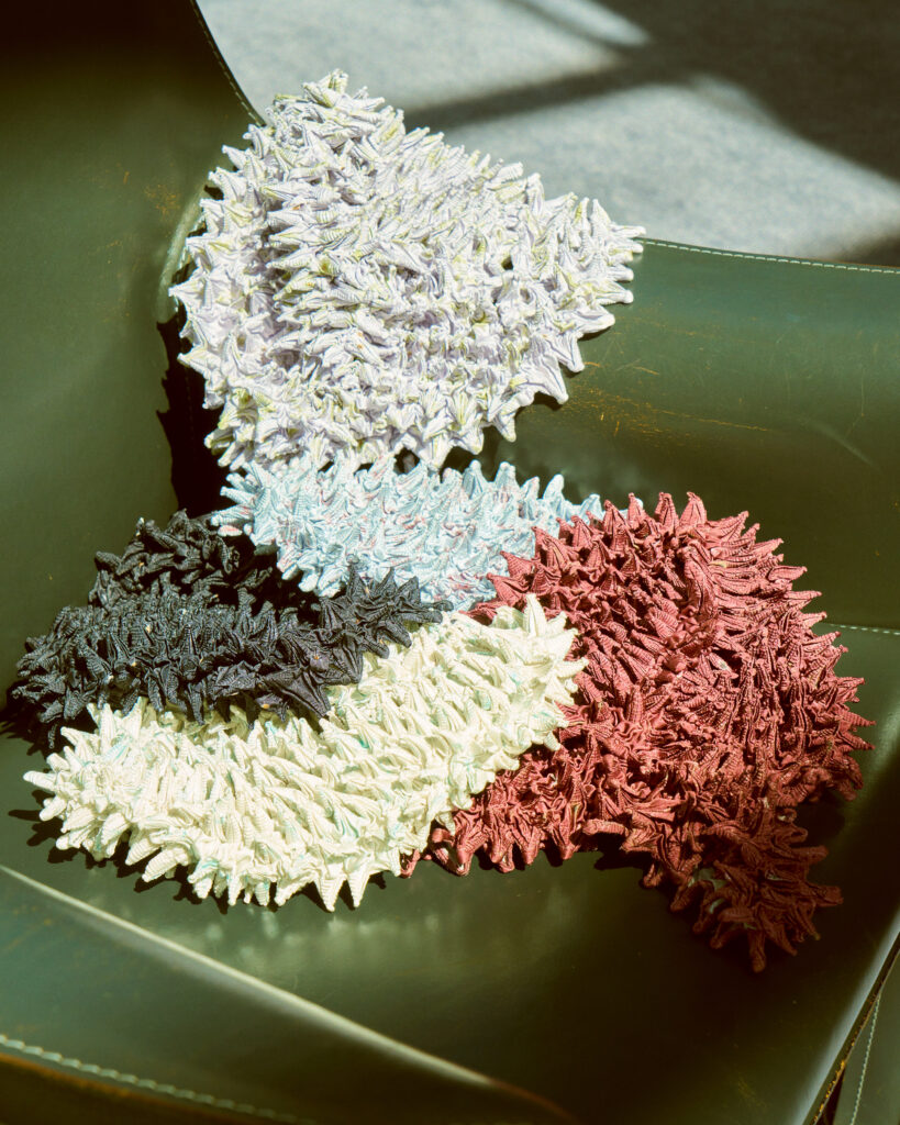 「25秋冬コレクションは繕うをキーワードに”手の感覚”を強く意識したコレクションでした。同時に平坦な道の りではなかった私たちの繕う道筋をどこか洋服ではない要素で表現してみたかった。そこで出逢ったのが BUNZABROUのツンツンバッグでした。 京都の伝統工芸である絞りを用いて表現される立体的なフォルム。そこに宿っているのは確かな人の手による力 強さと繊細な技術。それはアートオブジェクトにも近いようなまさに工芸品だと私たちは思います。 BUNZABROUのツンツンバッグをベースに25秋冬コレクションで使われた素材のキーカラーをミックス。柄は足 跡をイメージしデザイナー関口の鉛筆描きのデッサンが広がります。繕うというテーマだからこそ生まれた特別 なコラボレーション。手と手が交わり織りなすコラボレーションです。」