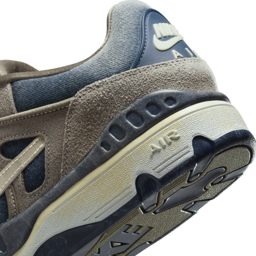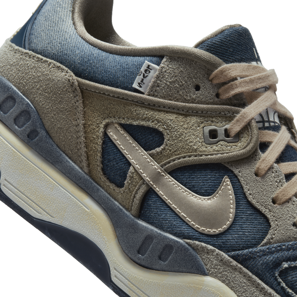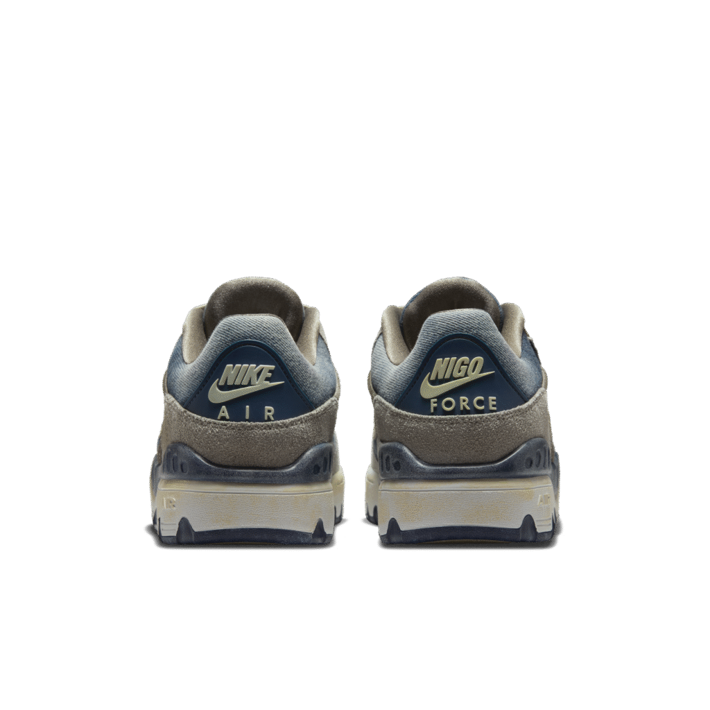 Levi’s® x NIGO x Nike Air Force 3 Low のモチーフになったのは、Nike が1988 年に発表したオリジナルのシルエット。それを、NIGO が収集してきたレアなヴィンテージデニムの膨大なパーソナルコレクションをもとに再解釈している。さらに、1970 年代の終わりに登場して大人気になったLevi’s®のスニーカーからもインピレーションをもらった。このコラボレーションでは、アメリカと日本のカルチャーを象徴する3 つのデザインの思想が完璧な形で融合している。専用のオリーブグレーのカラーウェイを持つAir Force 3 Low は上質な作りを持ち、Levi’s®とNIGO 両者のデザイン哲学を象徴する「使いこまれた美しさ」を表現している。アッパーでは色落ちしたデニムとテクスチャーのあるスエード素材を組み合わせ、独特な質感と立体感を生み出した。右足に入ったアイコニックなLevi’s®のレッドタブ、そして歩くたびに光を映し出すメタリックのスウッシュは、このモデルを象徴するディテールとなっている。EVA 素材のミッドソールにはあえて黄ばみ加工を施し、リアルな履き込まれ感を演出。そしてラバー製のアウトソールはNike ならではの優れたパフォーマンスと耐久性を発揮する。