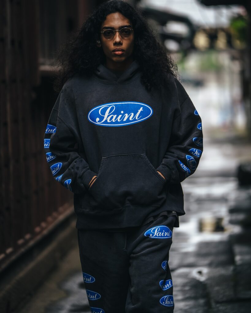 今回のコレクションでは、A BATHING APE®(ア・ベイシング・エイプ)とのコラボレーション第2弾が登場。8月にリリースされたDROP1に続き、DROP2ではBAPE®を象徴するアイコニックな“SHARK HOODIE”がラインアップに加わる。さらに、ロサンゼルスを拠点とするスケーターブランド「BABYLON(バビロン)」、そして伝説的音楽ユニット「The KLF(ザ・ケイエルエフ)」とのコラボレーション第2弾も同時展開。それぞれのブランドの個性と「©SAINT Mxxxxxx」の世界観が融合した、唯一無二のアイテムが揃う。また、コラボレーションに加えて、「©SAINT Mxxxxxx」で高い人気を誇るフーディーに合わせて着用できるスウェットパンツや、ブランド初となるウール素材のアウターも登場。セットアップとしても楽しめるラインアップとなっている。