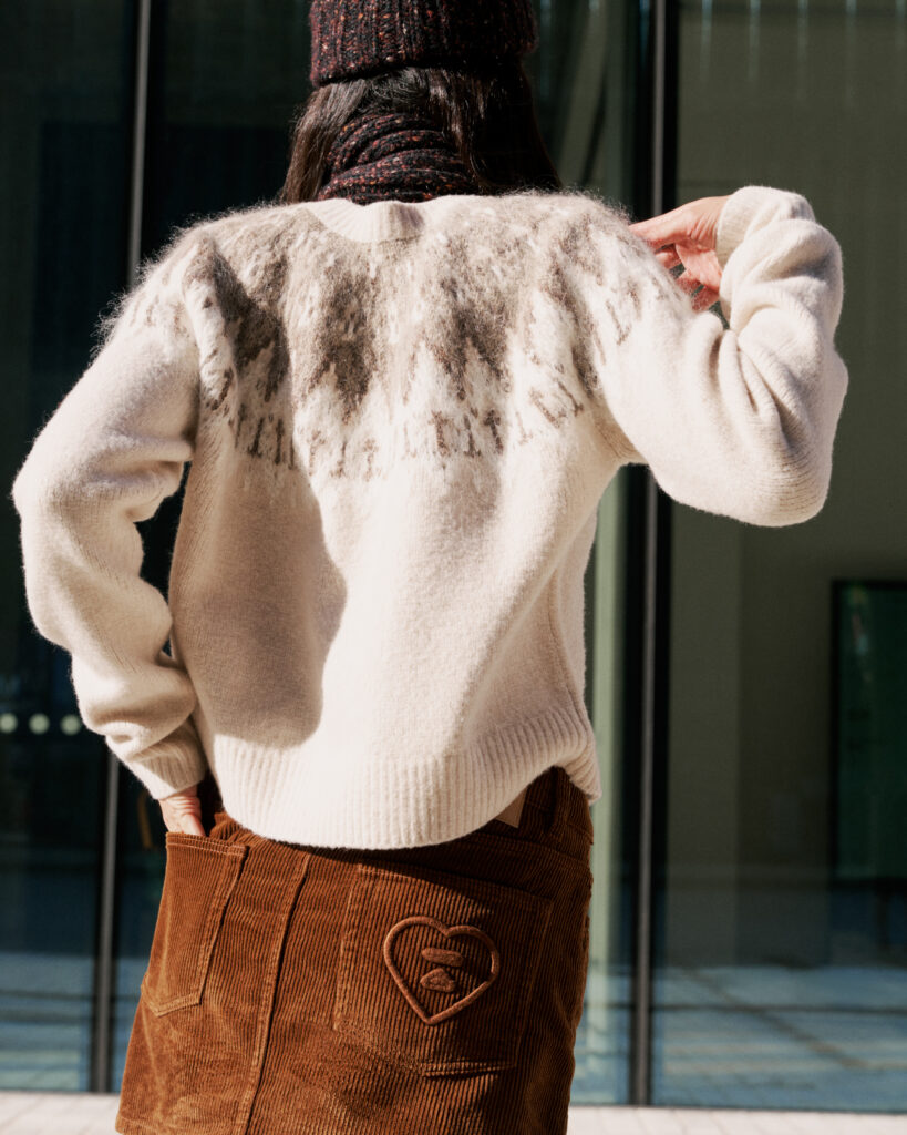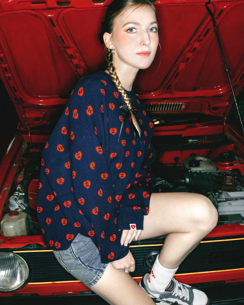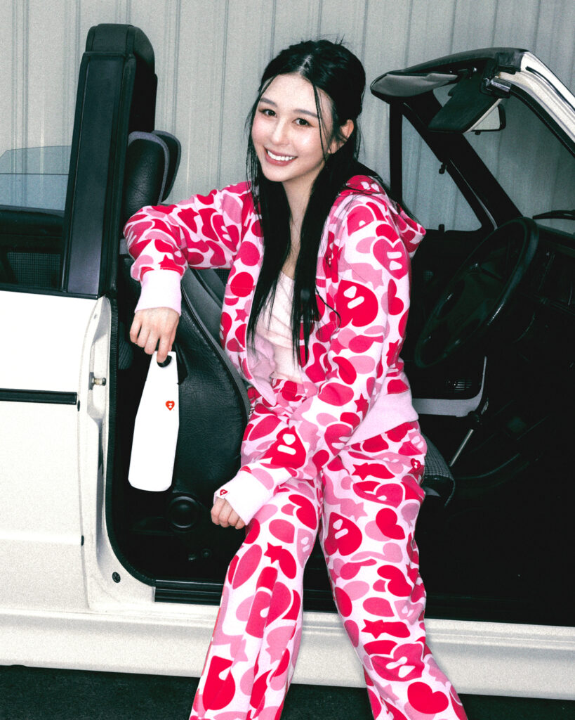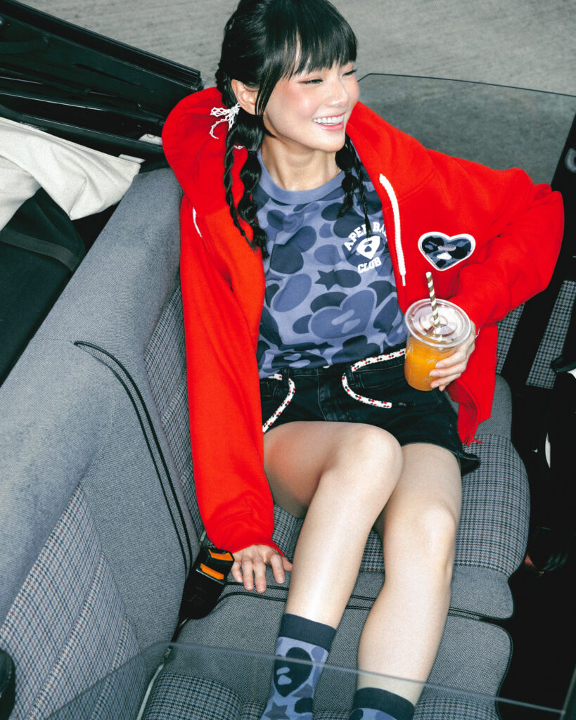 今季のコレクションは、APEEの象徴であるハートモチーフをベースに、カモフラージュやヒョウ柄などのクラシックな要素を再構築。甘さとストリートマインドが溶け合う、APEEならではの美学を表現。スウェットシャツ、デニム、アウター、ニット、アクセサリーまで、多彩なアイテムを展開。ゆったりとしたシルエットと鮮やかなカラーパレットで、スクールからストリートまで幅広く対応する。