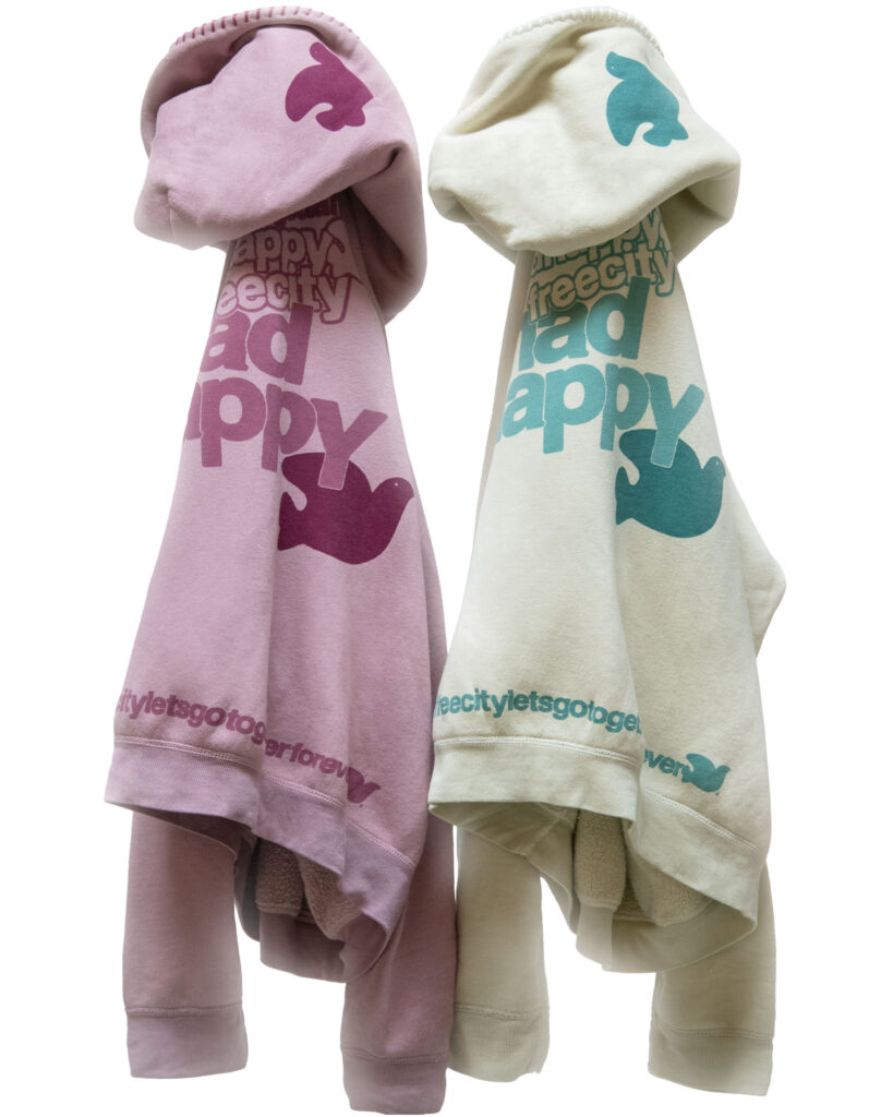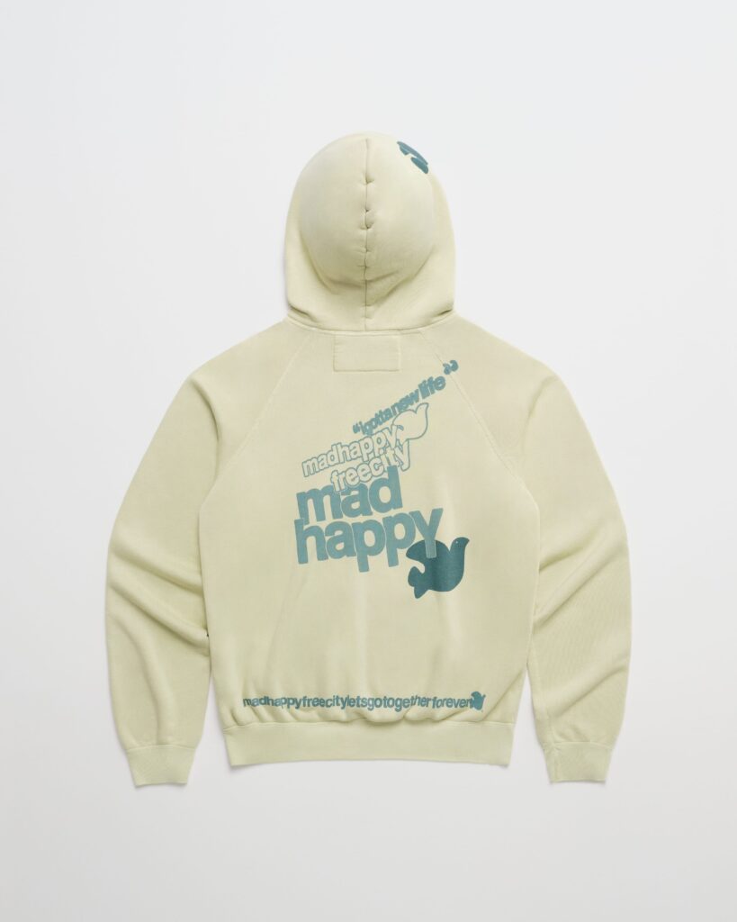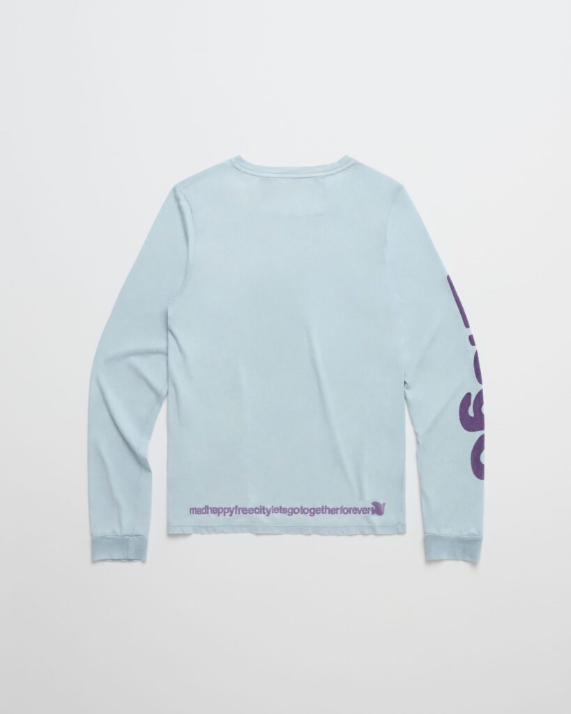 本コレクションでは、2000 年代のノスタルジックな空気をそのままに、madhhappy との出会いによって現代的な感性と融合し、新たな意味をもって再解釈。過去と今が穏やかに溶け合いながら、カリフォルニアの自由なスピリットを新しい形で映し出している。言葉、グラフィック、空間を通して生まれる“つながり”をテーマにした、T シャツ、フリース、アクセサリーのコレクション。すべてハリウッドのスタジオで一点ずつ、丁寧に手作業で仕上げられている。