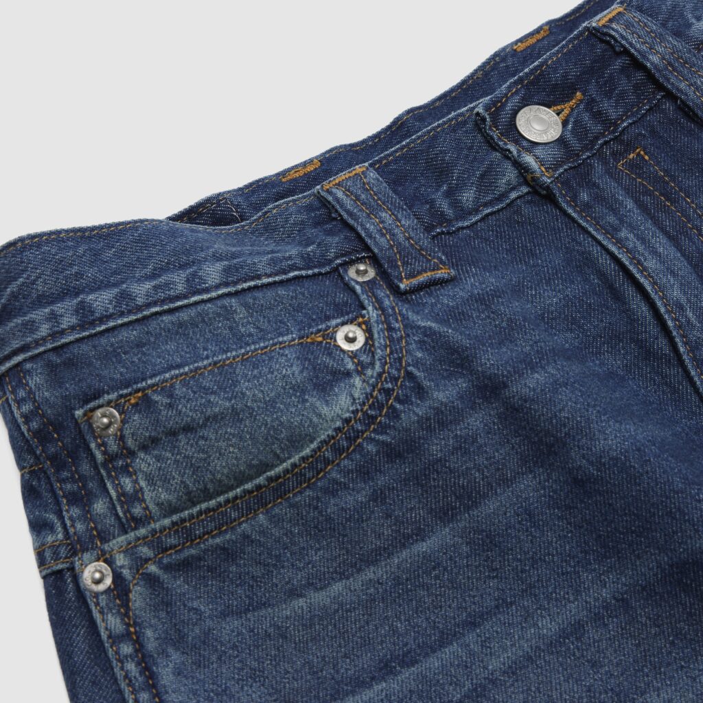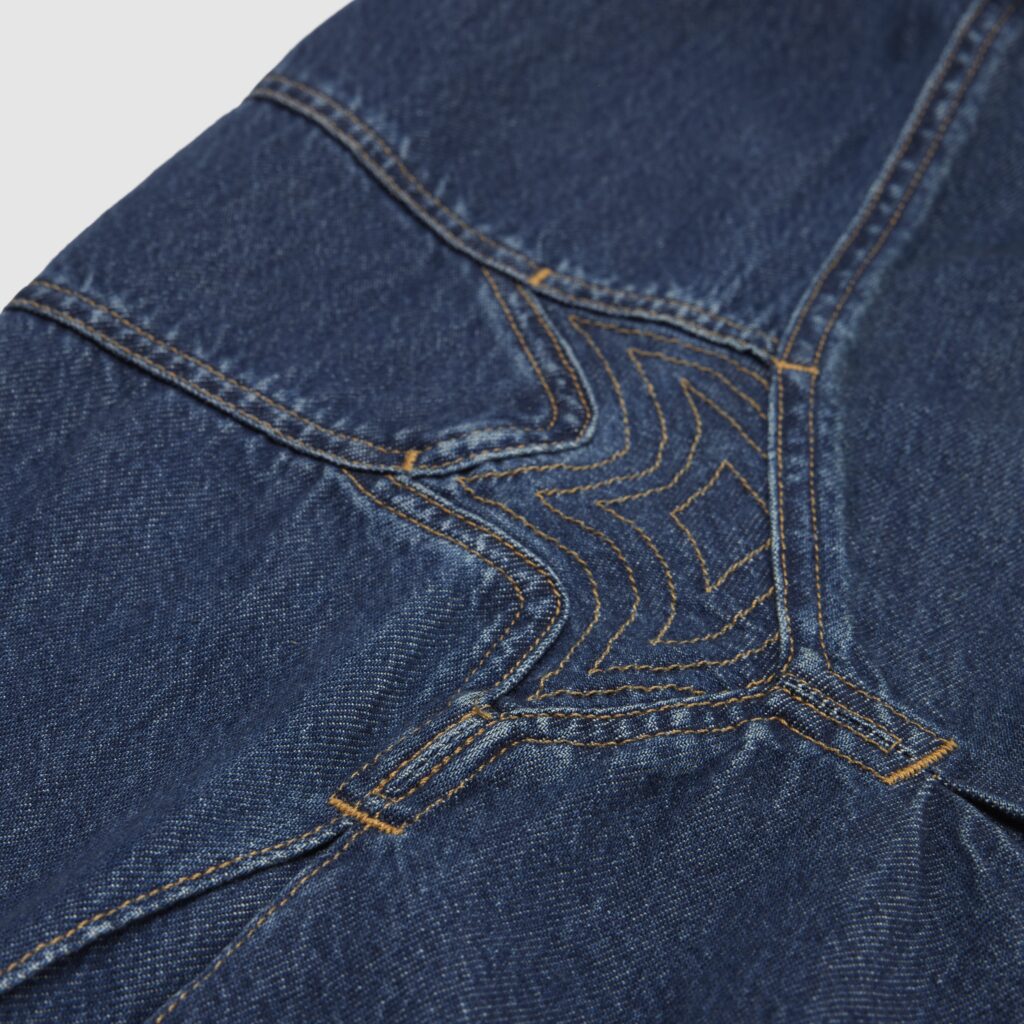 このジャケットと合わせられるように用意したのが Levi’s® x Kiko Kostadinov Articulate Jeans 。ジャケットと同じ 10 オンスのミッドブルーインディゴ生地を使用し、コレクション全体を本格的なデニムのヘリテージと深く結びつける役割を持ったアイテムになっている。第一弾のモデルからアップデートされた膝まわりのディテール。1 本針のトップステッチ。よりワイドになったベルトループ。そして、このモデルならではのバックヨークのディテールを持ったストレートでゆったりめのシルエット。クラシックなアメリカンワークウェアを現代的に再解釈したデザインだ。