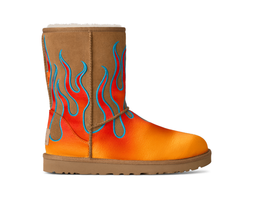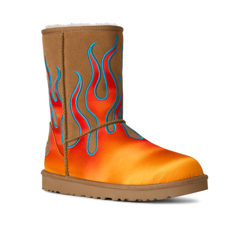 南カリフォルニアを拠点とするグローバルライフスタイルブランド UGG®(a division of Deckers Brands [NYSE: DECK])は、2017年以来となるデザイナー ジェレミー・スコット とのコラボレーションモデル UGG® Jeremy Scott Classic Short(アグ ジェレミー スコット クラシック ショート)を限定復刻し、11月14日(金)より発売する。ジェレミー・スコットのアイコニックなフレイム(炎)を刺繍で施した本モデルは、2017年に初登場し、UGG®のコラボレーションプログラムに新たな方向性を打ち出したアイコニックな一足。今回の復刻は、UGG®の2025年秋冬キャンペーン 「Iconic From the First Step」 の一環として8年ぶりに実現したもので、ブランドとスコットの長年にわたる関係性、そしてシーズンを超えて愛されるコラボレーションの象徴として、再登場。