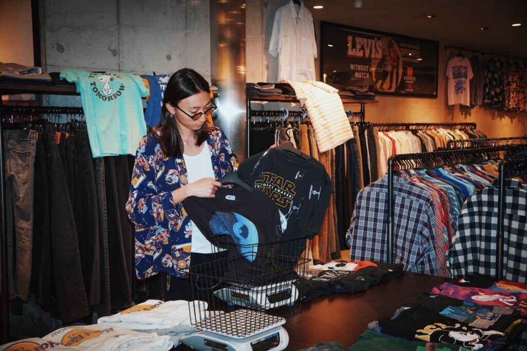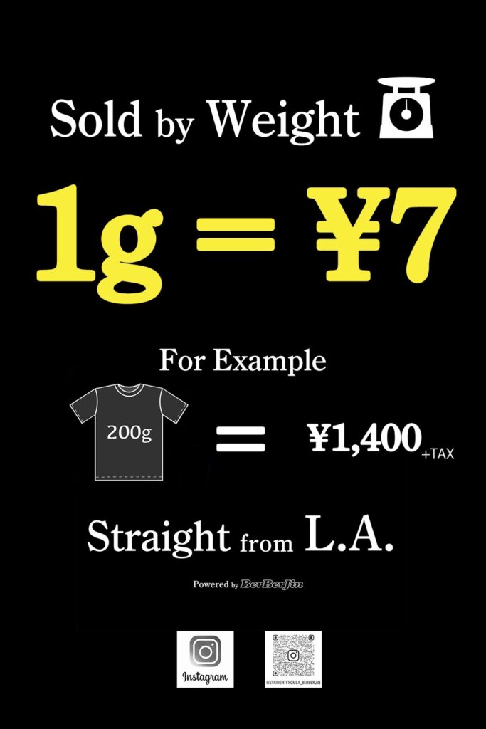 APPLICATIONで開催されるStraight From LA powered by berberjinのPOP UP STOREでは、アメリカで直接買い付けた古着を1gあたり7.7円(税込) で販売。