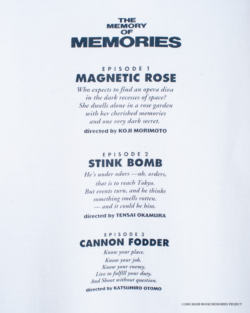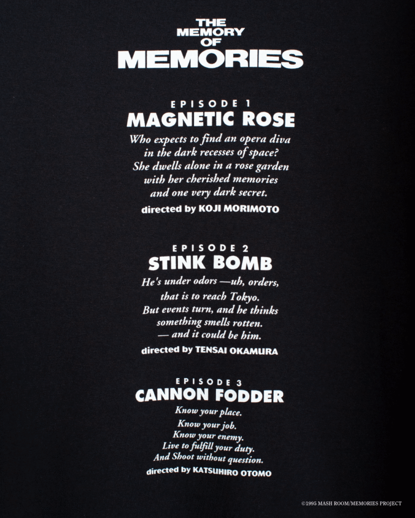 1995年に公開され、今年30周年を迎える『MEMORIES』は、「彼女の想いで」「最臭兵器」 「大砲の街」の3つの短編からなるオムニバス形式のアニメーション映画。大友克洋が原作・製作総指揮・総監督を務め、若手クリエイターとの共同作業で制作された本作は、各短編それぞれに、いまもなお色褪せない鮮烈な魅力をたたえた名作オムニバスです。