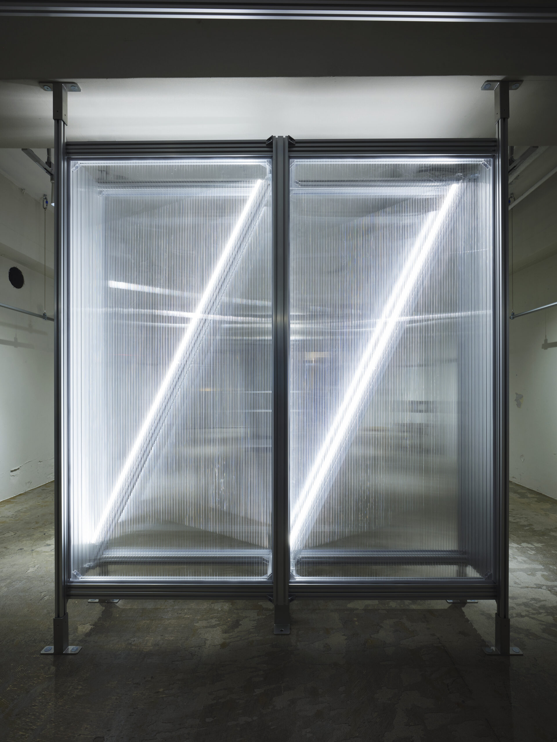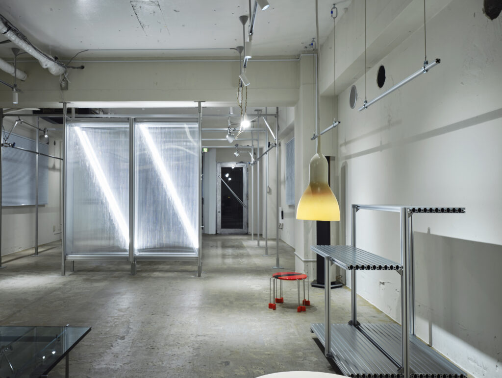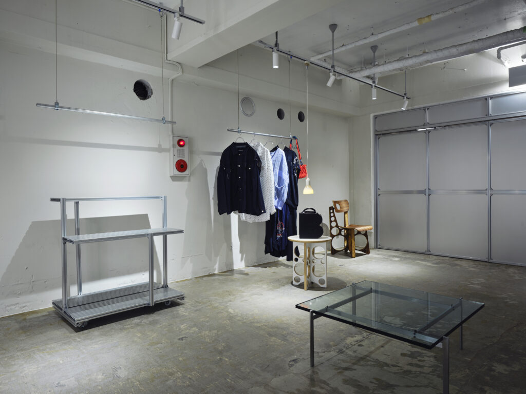 なかでも店内中央に配されたシンボリックな照明/棚は、NEW POLICYの象徴となる存在。ブランドの解釈とインテリアデザインが融合した、新しい価値観を刺激する空間が完成している。
