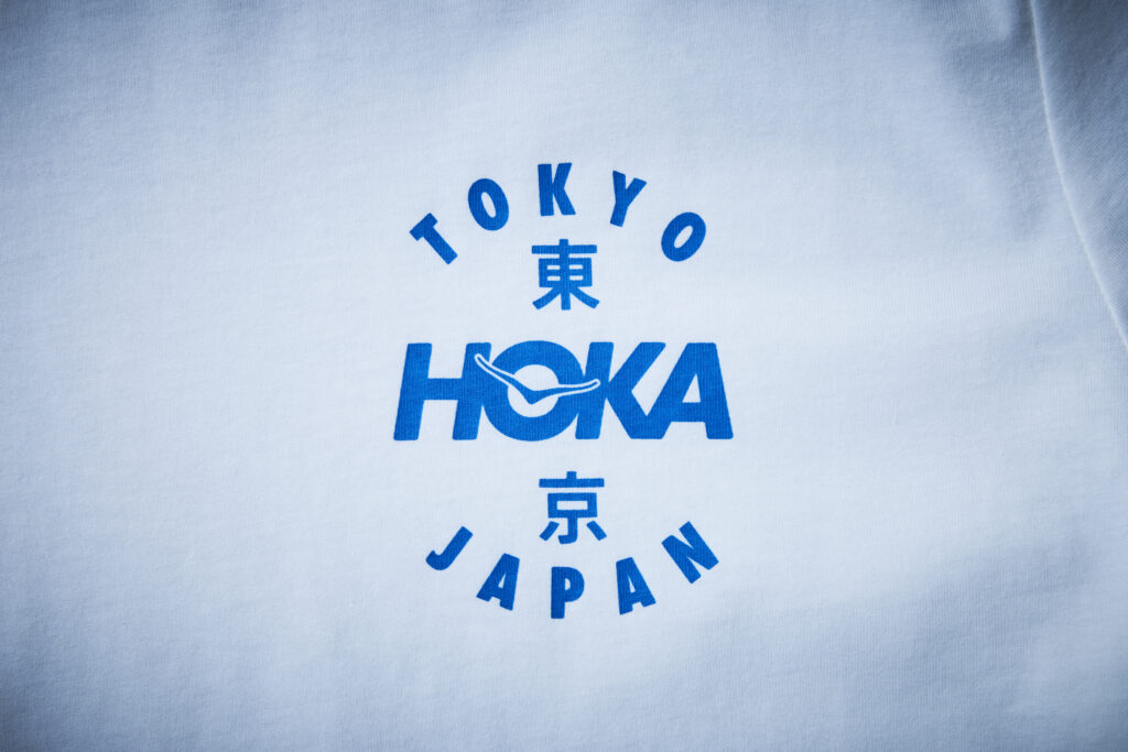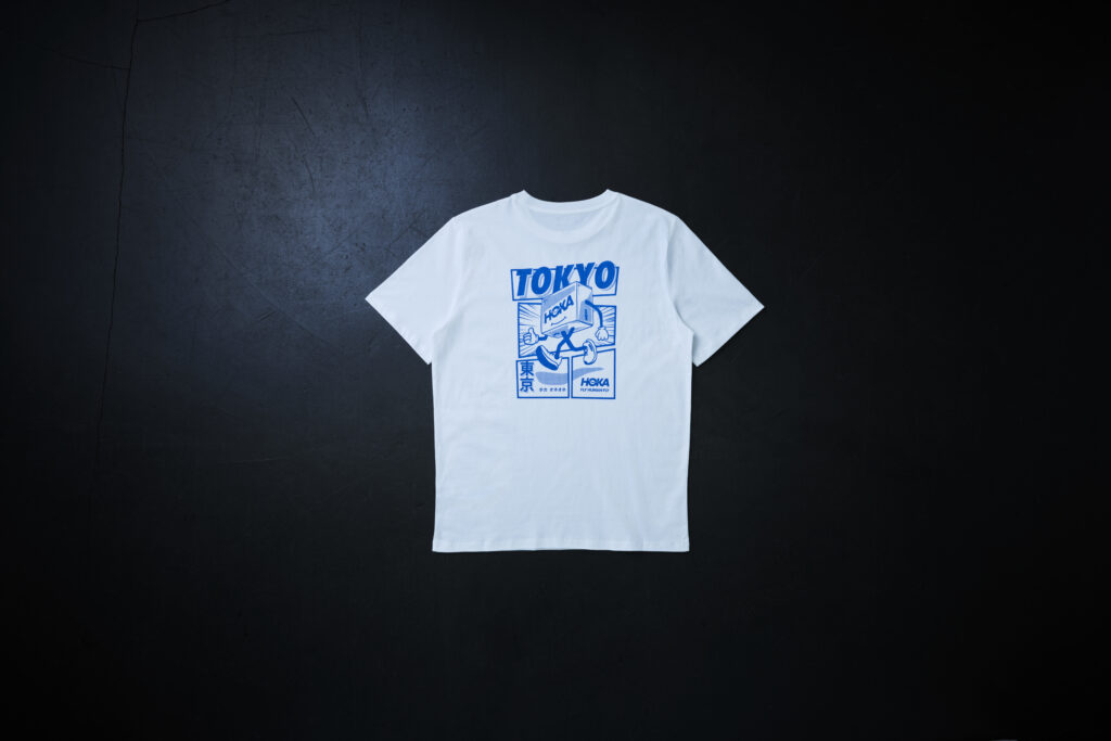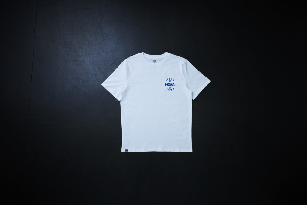 都内のHOKAストアでのみ販売している限定Tシャツ。ホワイトボディーを基調とし、ブランドカラーのブルーを用いたイラストデザインがあしらわれた都内のHOKAストアエクスクルーシブアイテムとなっている。