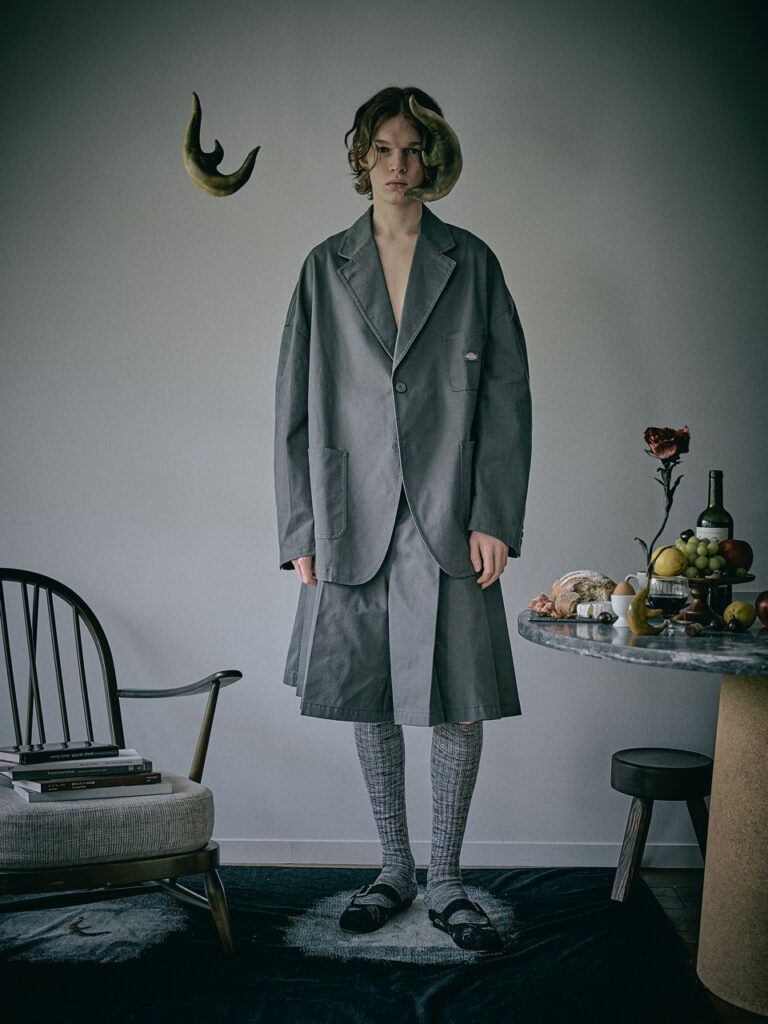 今回登場するアイテムは、ワークウェアを象徴する Dickies®と、日常の情景を描くようなデザインアプローチを持つ SHINYAKOZUKA が融合した、ユニフォームとファッションの新たな関係性を提示するラインナップ。 それぞれの背景を持つアイテムが素材と構造によって自然に溶け合い、セットアップとしても単品としても強い存在感を放つ仕上がりとなっている。