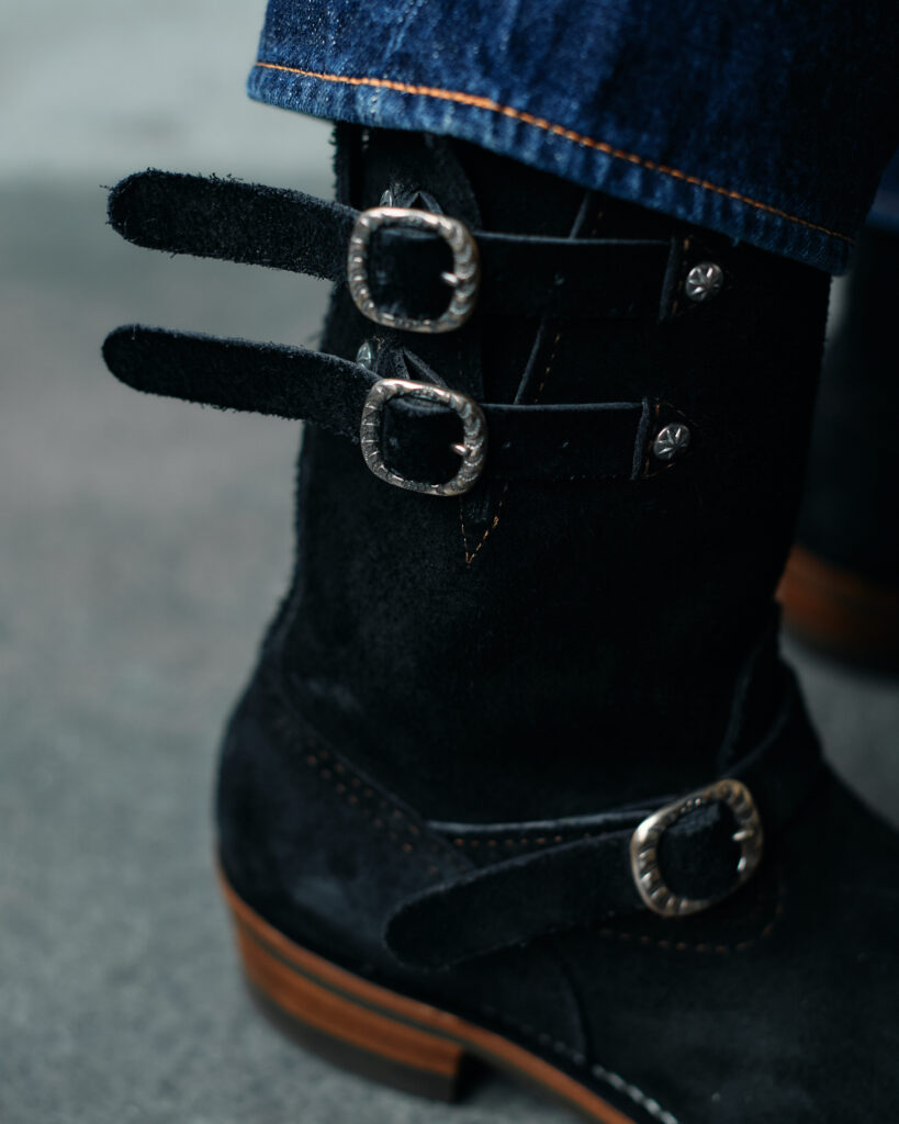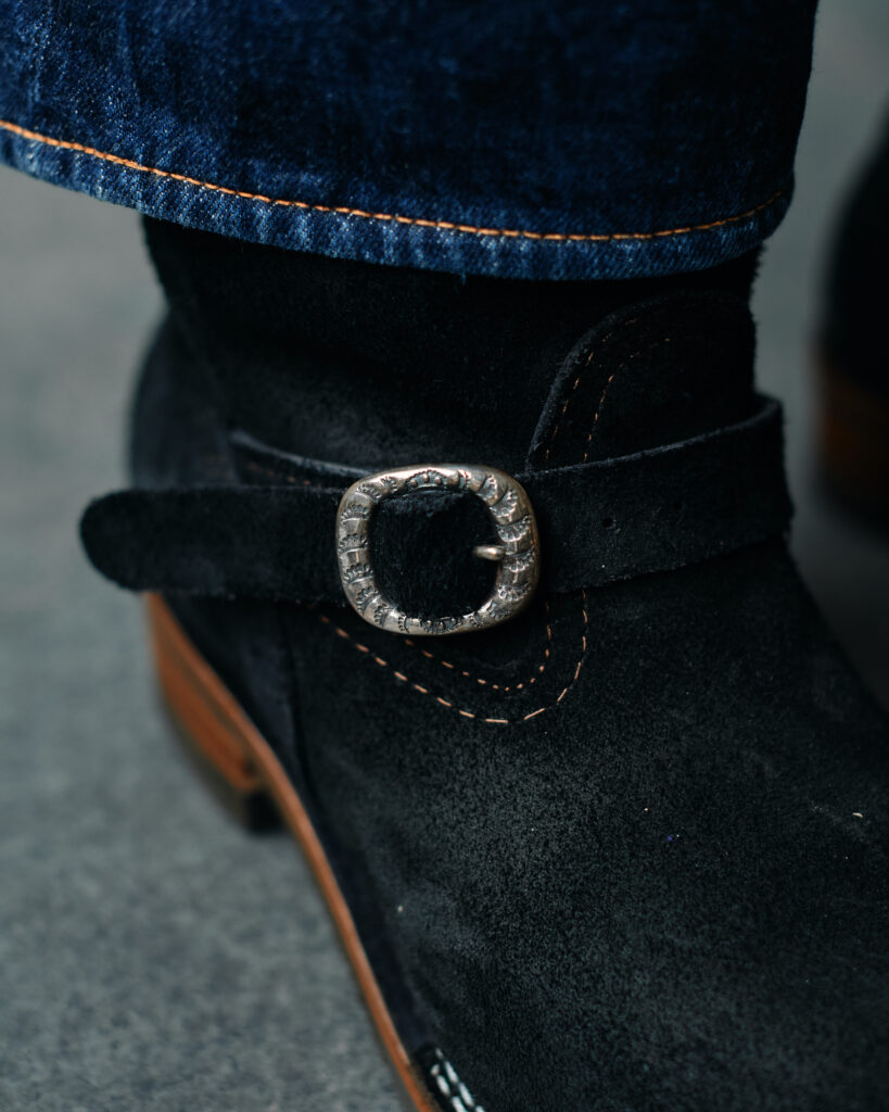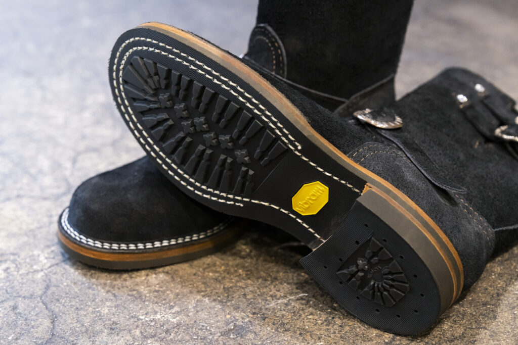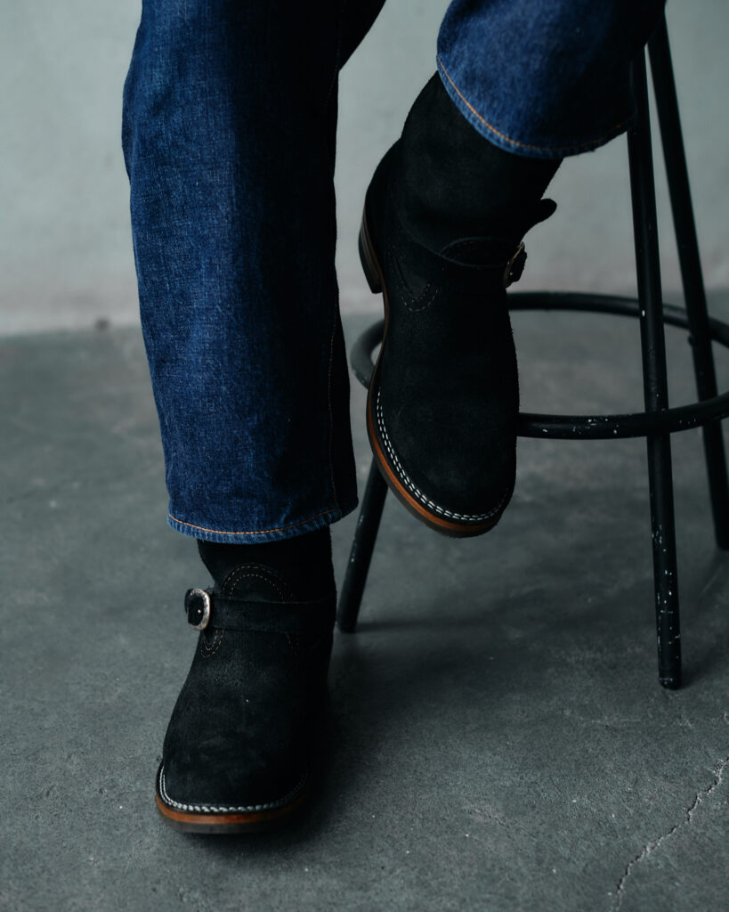 本コラボレーションは、WESCO JAPAN代表・岡本直氏と、GDCディレクター・熊谷隆志が直 接対話を重ねる中で、互いの感性が共鳴し実現した。本作は、GDCの再始動を象徴する ニューコレクションの中でも、とりわけ存在感を放つ一足。WESCOの定番エンジニアブーツ 「BOSS」をベースに、互いへの深いリスペクトがあってこそ具現化した、WESCO史においても稀有なエクスクルーシブモデルだ。 デザイン面では、熊谷隆志が長年傾倒してきたヴィンテージナバホジュエリーから着想を得た Silver 925製バックルを採用。ハンドメイド感のある表情が、ブーツ全体に奥行きを与えている。さらに、GDCの象徴である8芒星STAモチーフのSilver 925製スタッズをベルト部分に打ち込み、コラボレーションならではの存在感を演出。ベルトは上部2インチ、下部1インチと長め に設定され、スタイリングの幅を広げている。アッパーには、足馴染みがよく、履き込むほど に表情を増していくブラックオイルドラフアウトレザーを採用。力強さを感じさせながらも上質な佇まいを備えた素材選びは、WESCOならではのクラフツマンシップを体現している。堅牢な作りはそのままに、削ぎ落とされたフォルムと快適さを損なわないフィッティングを重ね、力強さと美しさを兼ね備えた仕上がりが特徴。ラストには、ヒール高がやや高めで自然な傾 斜が美しいフォルムを生む「9165」を採用。安定感のある履き心地と快適性を両立している。アウトソールには〈Vibram #430〉を装備し、武骨な表情を備えながらも、街履きにも適した高い安定感と歩きやすさを実現した。 熊谷自身のライフスタイルに根ざしたファッション性と、WESCOが誇る伝統的なブーツメイキングが交錯することで生まれた本作。