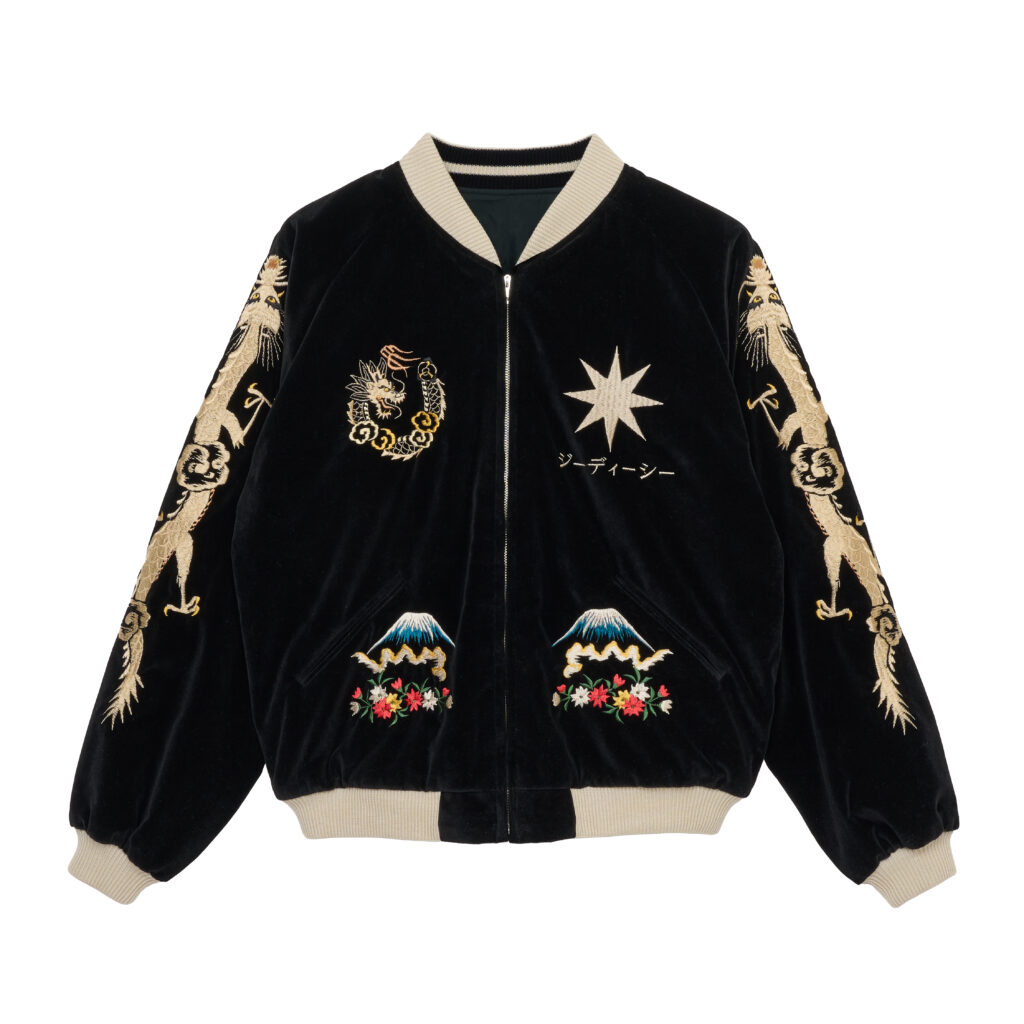 スカジャン史を彩る要素を凝縮し、GDC の美学と TAILOR TOYO の高い技術が結実した一着は、ヴィンテージスカジャンに見られる意匠・素材・刺繍技法を細部まで忠実に再現した特別仕様。
