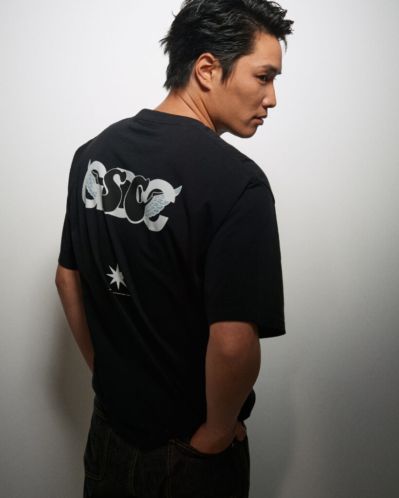 Tシャツには、本コラボレーションのために描き下ろされたコラボレーションロゴをプリントし、両ブランドの世界観を象徴する一枚に仕上げている。