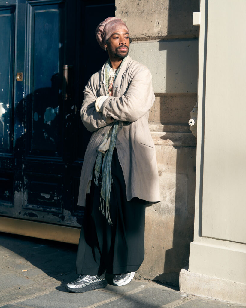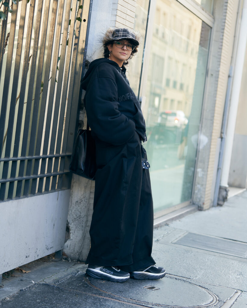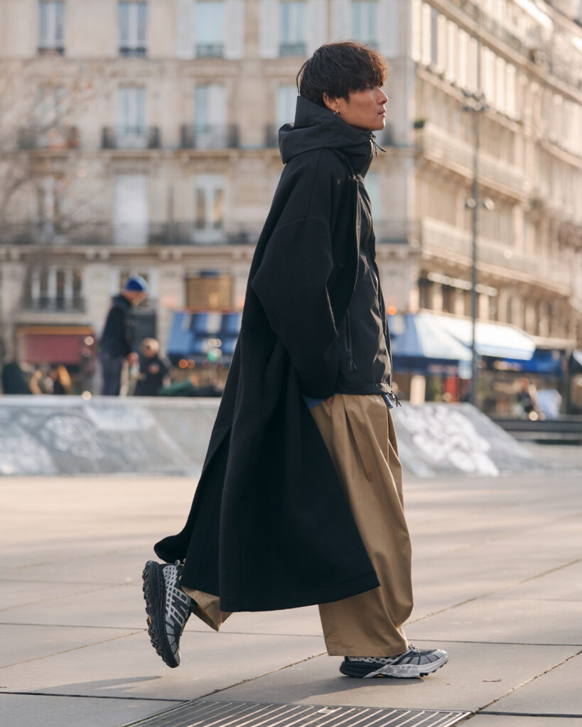 フランス・パリで開催された2026年秋冬シーズンのパリ・ファッションウィーク・メンズにて、HOKA の新作フットウェア「STEALTH/TECH COLLECTION」を着用したスタイルをスナップ。