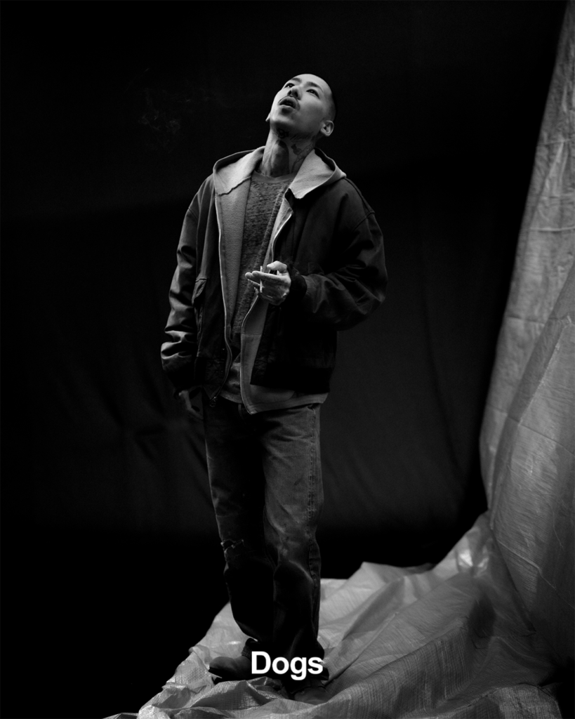 ヴィジュアルは Dogsメンバーのほか、縁のある若手ラッパー Kenayeboi、Yan Seku 、BABYWOODROSE などをモデルに起用、一人一人の個性が荒井 俊哉により存分に引き出された。