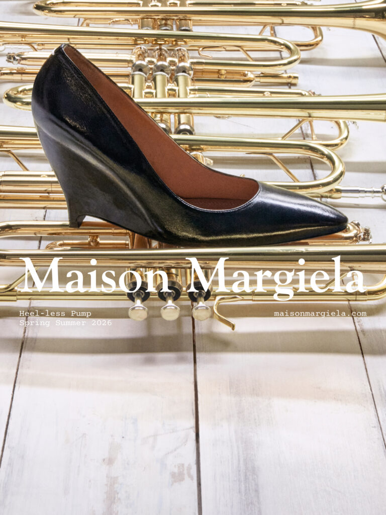 「ヒールレス」シューズは、メゾンマルジェラのアーカイブピースに着想を得たコンセプトを再解釈したシューズで、ヒールを内部に隠したデザインが特徴。