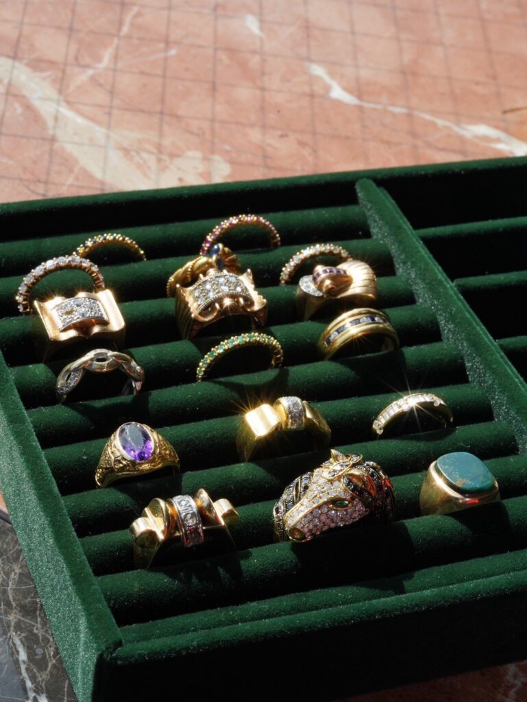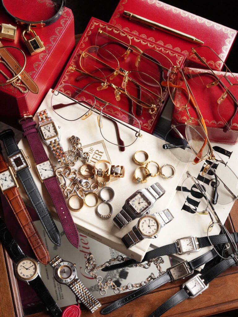 さらにジュエリーセクションでは、1800年代後半〜1900年代前半、当時のヨーロッパの貴族が身に付けていた一点もののアンティークジュエリーや、1960〜2000年代の Cartier、Tiffany & Co. といったメゾンのヴィンテージピースが集結。