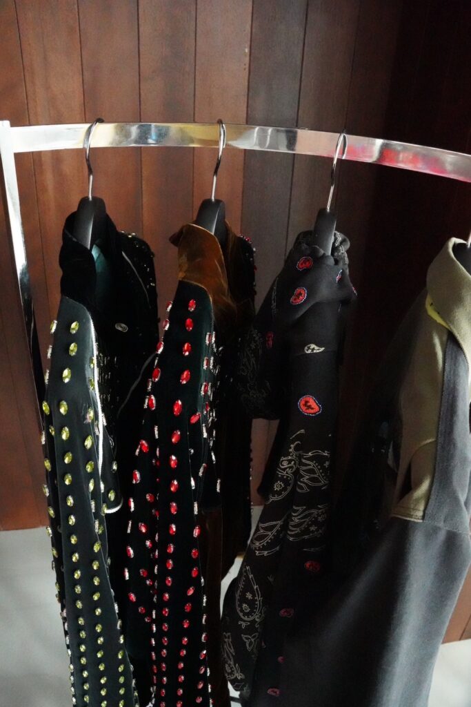 店内には両ブランドの最新コレクション、Suite Room 限定アイテムに加え、デザイナー自らが長年収集したデザイナーズアーカイブや、ヨーロッパ・アメリカで買い付けられたヴィンテージウェアが並ぶ。