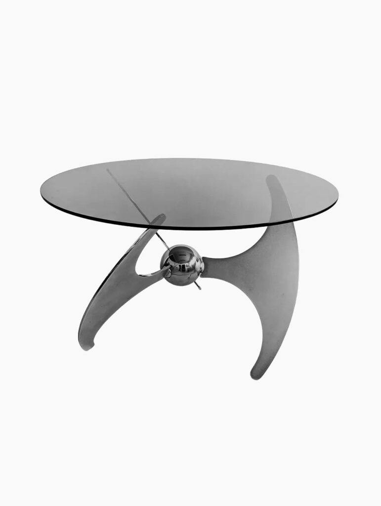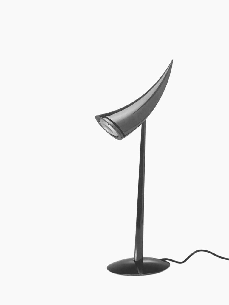 フィリップ・スタルクによる名作ランプARAをはじめ、ピエール・ガーリッシュのチューリップチェア、スイスで見つけた、アルミニウムを用いた現代的な作品などを展示。