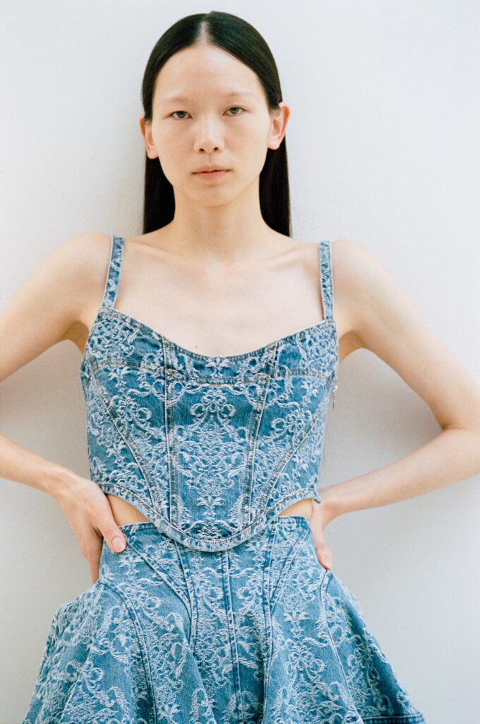 本ポップアップを記念し、クラシカルなダマスクモチーフをジャカード織りで表現したオリジナルデニムシリーズをはじめ、 コレクションテーマである「The Depth of Her」に通じる“内⾯と外⾯の交差”を象徴するデザインとなった胸元のラウンドカッティングが印象的なTシャツなど、伊勢丹新宿本店限定3型を発売。