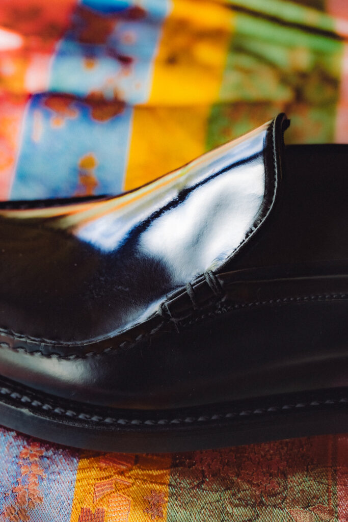 職人の手縫いによる緻密な仕上げと日本製のクオリティにこだわり、伝統と革新が融合した一足となっている。