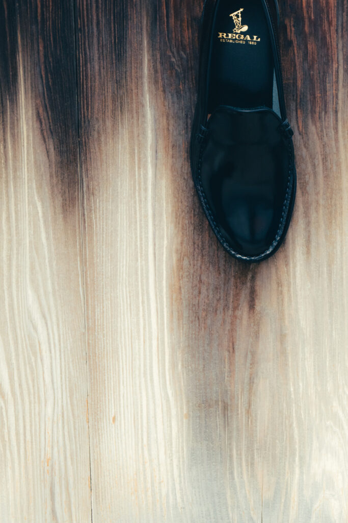 今回、落合が REGAL のアーカイブコレクションからセレクトし復刻させたのは、1972年に誕生しヴァンプ(つま先)の形状が蛇のコブラの頭部に見えることから、”コブラヴァンプ” と呼ばれ広く愛された伝説的モデル「2167」。