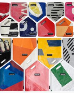 顔料を重ねたコットン素材に洗い加⼯を施すことで、ヴィンテージのような⾵合いへと変化し、装飾性と経年変化の魅⼒を併せ持つプロダクトに仕上げた。