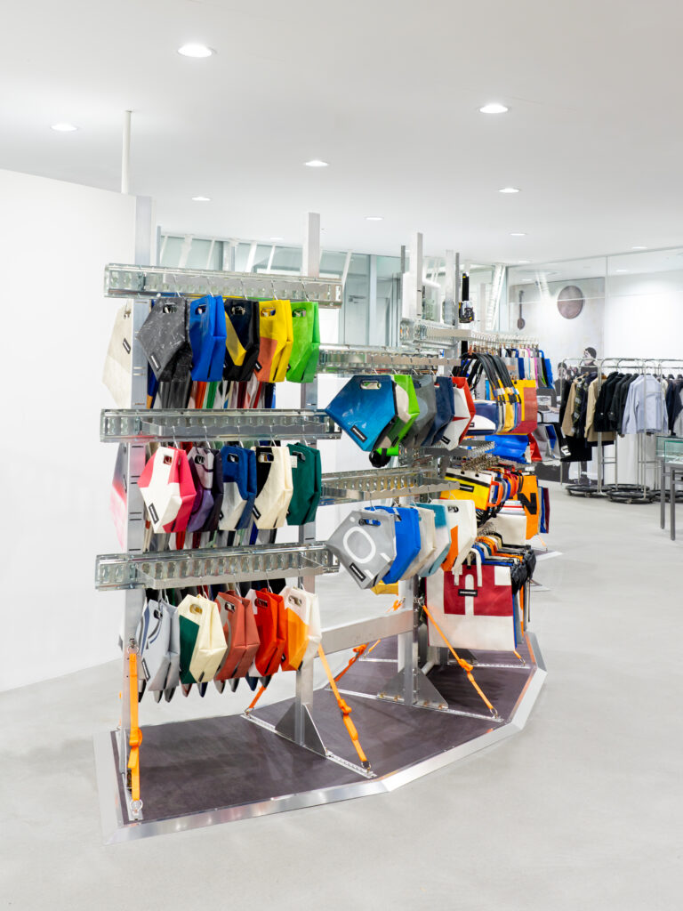 3月28日、DSM 銀座 3階にオープンした「FREITAG Space」は、トラックの荷台や物流センターから着想を得た特別なインスタレーションが施され、ヨーロッパのハイウェイを起源とするブランドのルーツを表現。
