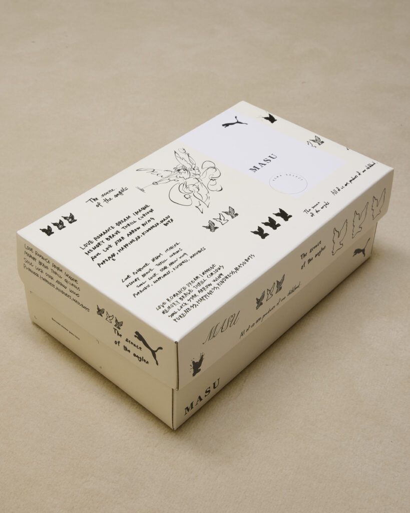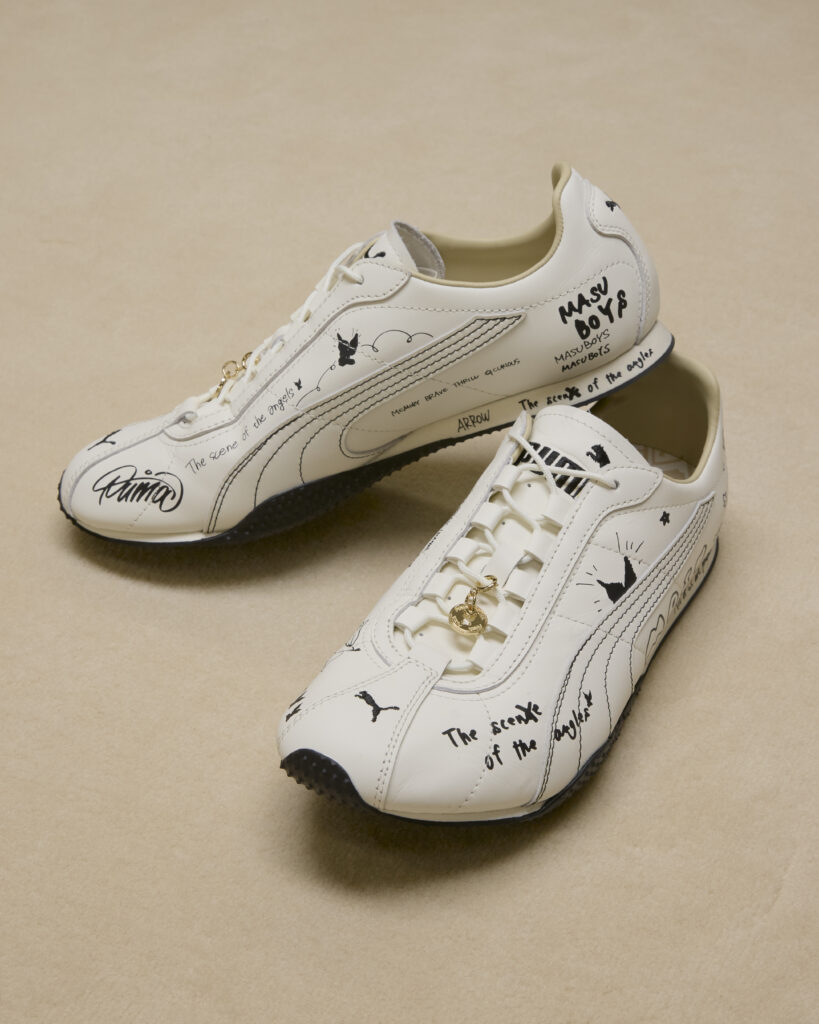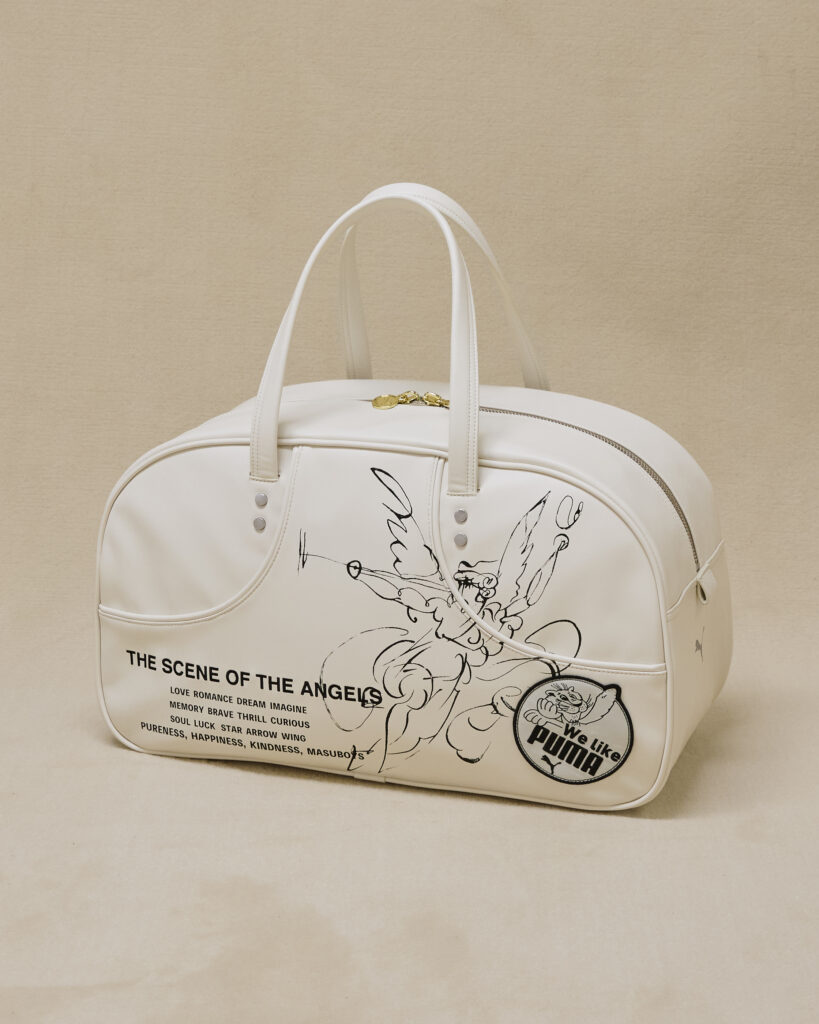 MASU のアトリエチームが書き起こしたグラフィックを使用したシューズ、Tシャツに加えて、PUMA のロングセラーバッグであるグリップバッグなど3型を展開する。