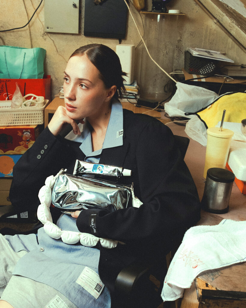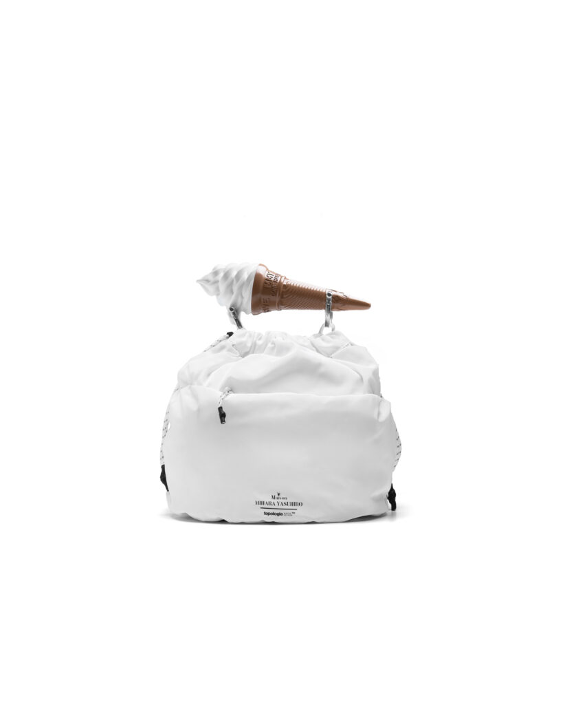 アクセサリーラインで印象的なバナナ・ソフトクリーム・⻭磨き粉やボリューム感あるフォルムを融合した、topologie の冒険⼼と Maison MIHARA YASUHIRO の遊び⼼を感じられるコレクションとなっている。