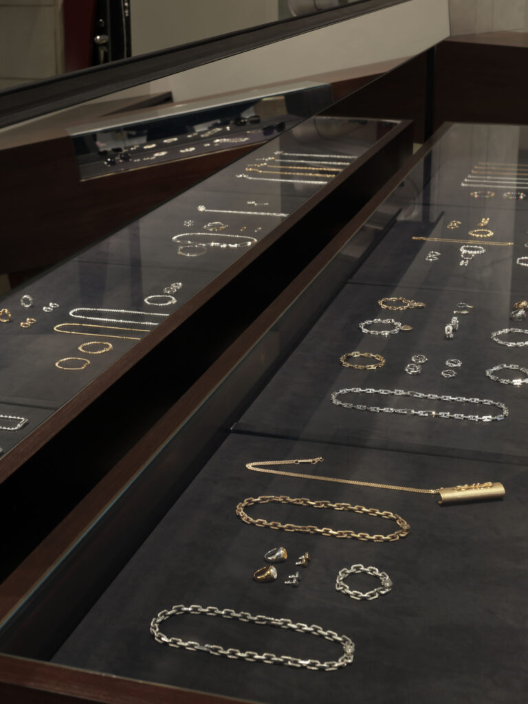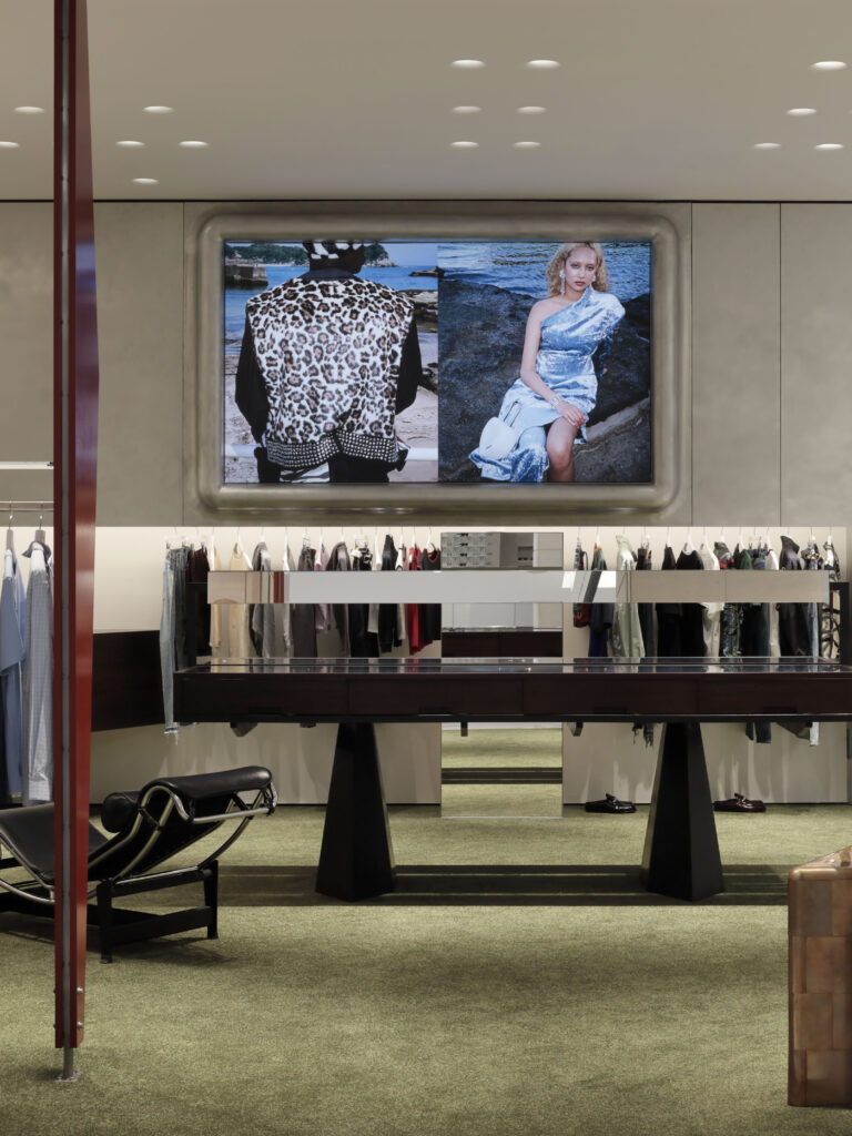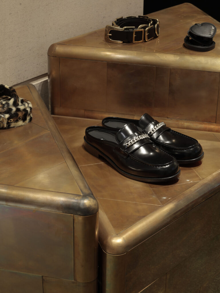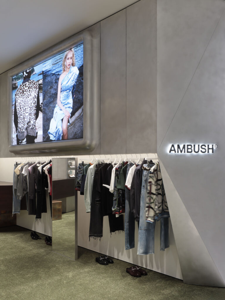AMBUSH® の空間と同様に、レイアウトはあえてミニマルかつ可変的に設計されており、展示物や映像によって空間の表情が変化し続ける、ブランドの表現を映し出す進化するステージとして位置づけられている。